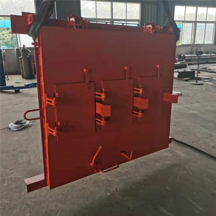 3、闭锁装置设置2组,一组为通常关闭用的闭锁轴、手柄转动式;另一组为紧急闭锁装置,其功能是当冲击力大于294N时,瞬间,门与门框紧闭,压缩密封圈,锁头进入锁心,拨动双片弹簧,制动闭锁,防止门反弹;拨动外钥匙手柄即可解除闭锁。